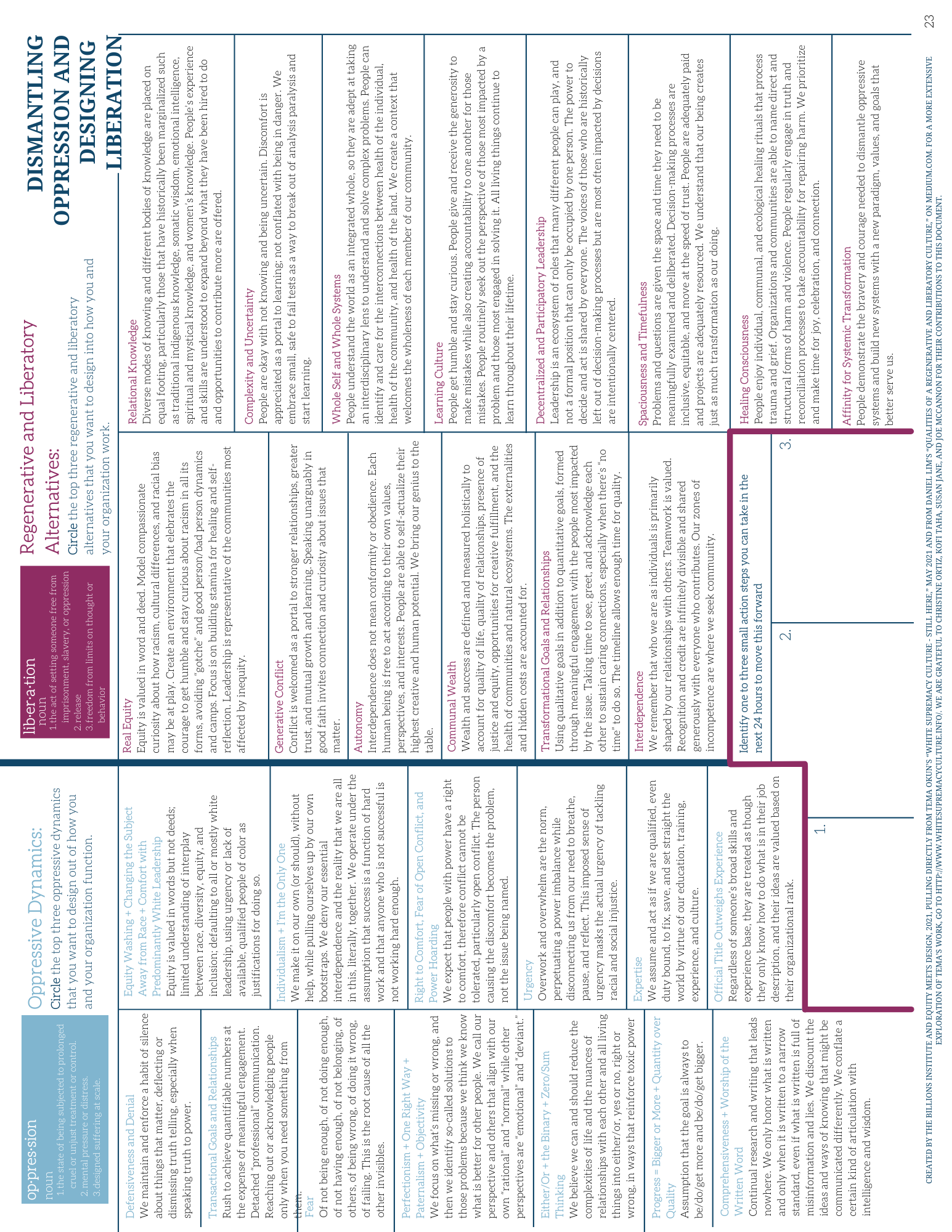 When it comes to the way you work and your organizational culture, what elements of WSC are you interested in dismantling? What are the elements of a regenerative, liberatory culture you want to design into being?